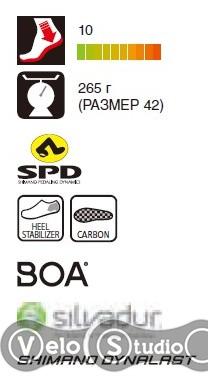 Технология Shimano Dynalast, которая используется в Shimano RX800 позволяет использовать более лёгкую и тонкую структуру подошвы. Также Shimano Dynalast обеспечивает высокую производительность при этом меньшую утомляемость во время педалирования.